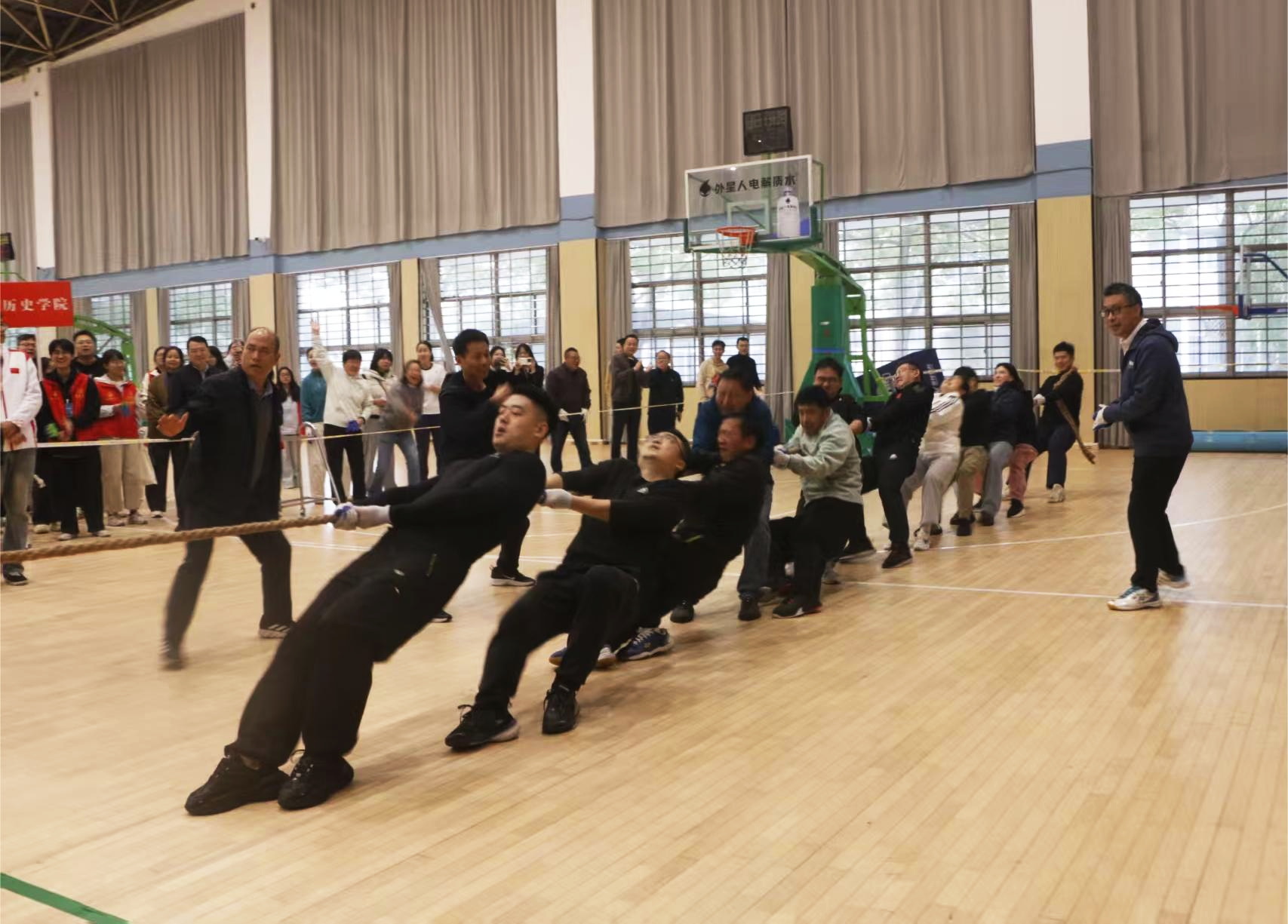 在刚刚落幕的安徽师范大学第54届田径运动会教职工拔河比赛决赛中,法学院代表队凭借顽强意志与默契配合,一路过关斩将,最终力克对手,勇夺桂冠,展现了法学院教职工团结一心、奋勇争先的卓越风采。