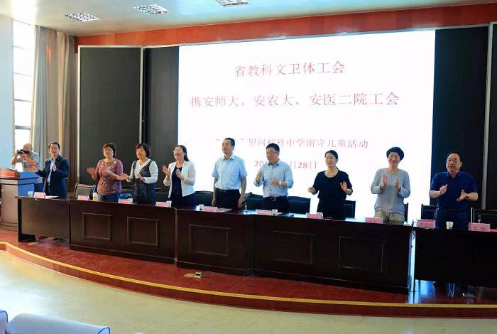 “六一”儿童节之际,5月28日,我校工会女工委积极响应安徽省教科文卫体工会号召,与安徽农大、安徽医大第二附属医院工会共同组织开展的“庆六一,关爱留守儿童”活动在泾县稼祥中学举行,为400余名留守儿童送去了雨伞、袜子、跳绳等贴心慰问品和“六一”节日祝福。