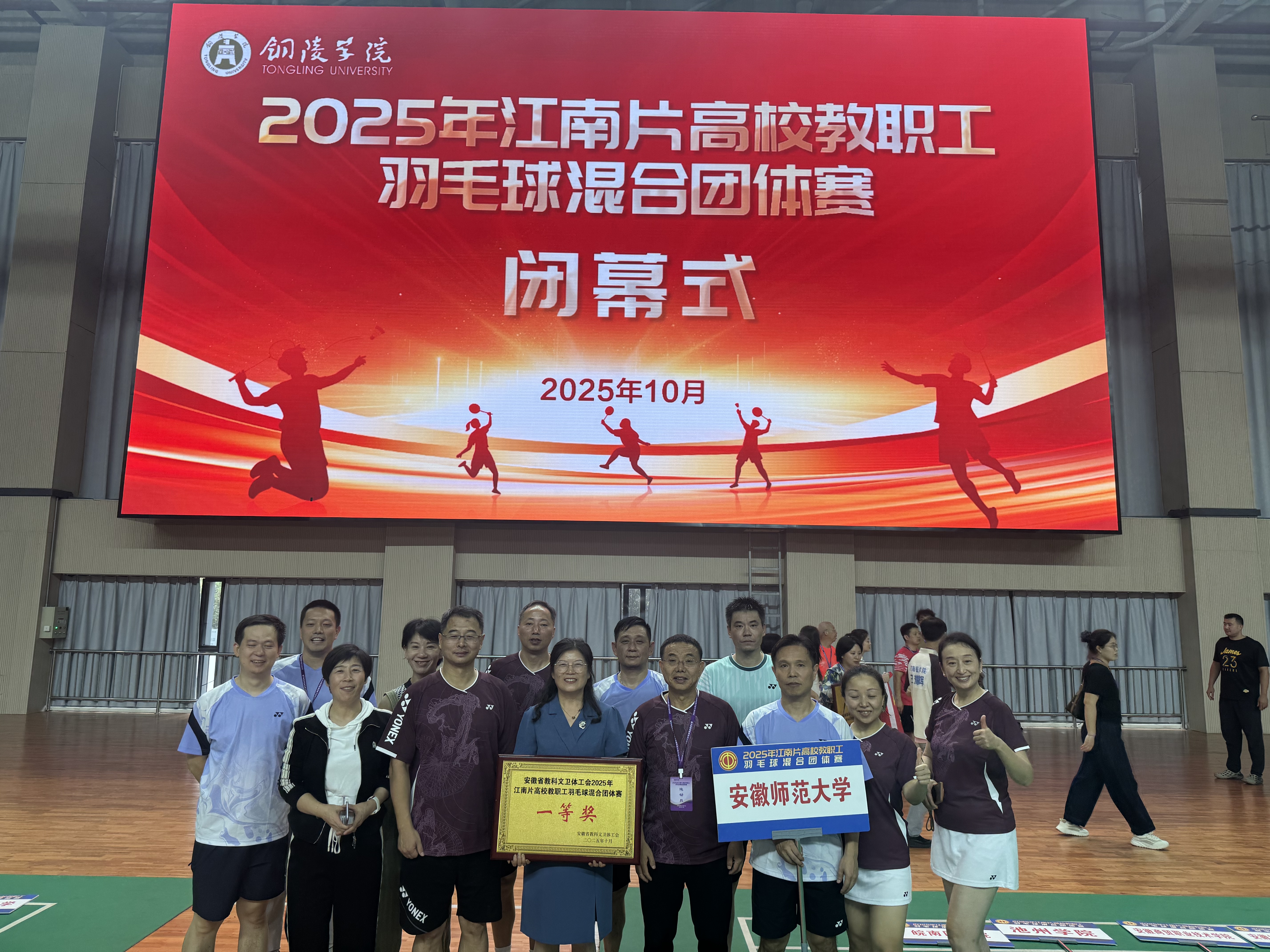 10月10日至12日,由安徽省教科文卫体工会主办、铜陵学院承办的2025年江南片高校教职工羽毛球混合团体赛,在铜陵学院翠湖校区羽毛球馆成功举办。我校教职工代表队历经两天激烈角逐,一路过关斩将、奋勇争先,最终斩获团体一等奖(第一名),为学校争得了荣誉。