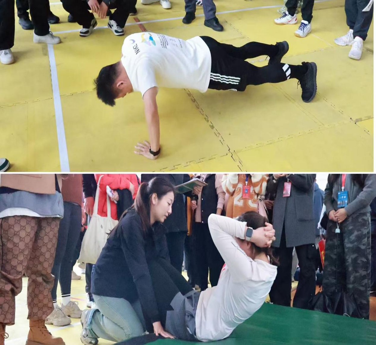 本年新增的男子俯卧撑、女子仰卧起坐比赛,成为现场焦点。男教职工们双手撑地、腰背绷直,每一次起落都稳健有力;女教职工们随节奏快速起身、平稳回落,汗水浸透衣衫仍咬牙坚持。现场加油声与计数声交织回荡,生动展现出老师们奋勇拼搏、永不言弃的体育精神。